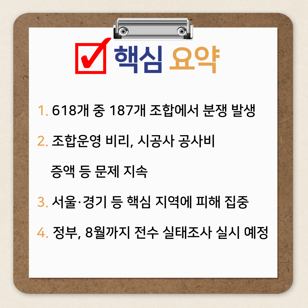 2025년 7월 8일, 국토교통부는 전국 618개 지역주택조합에 대한 실태조사 결과를 발표했습니다.