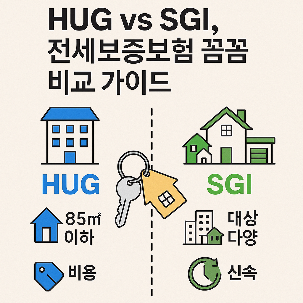 3040 실수요자들에게 전세 계약은 단순한 주거 선택을 넘어 가족의 자산을 지키는 중요한 재정 전략입니다. 전세사기, 역전세 위험이 커지면서 보증보험은 선택이 아닌 필수가 되었죠. 현재 전세보증보험을 제공하는 대표 기관은 **HUG(주택도시보증공사)**와 SGI서울보증입니다. 두 기관 모두 보증금을 지켜주지만, 보증 대상, 가입 조건, 보증료율, 처리 속도에서 뚜렷한 차이가 있습니다.